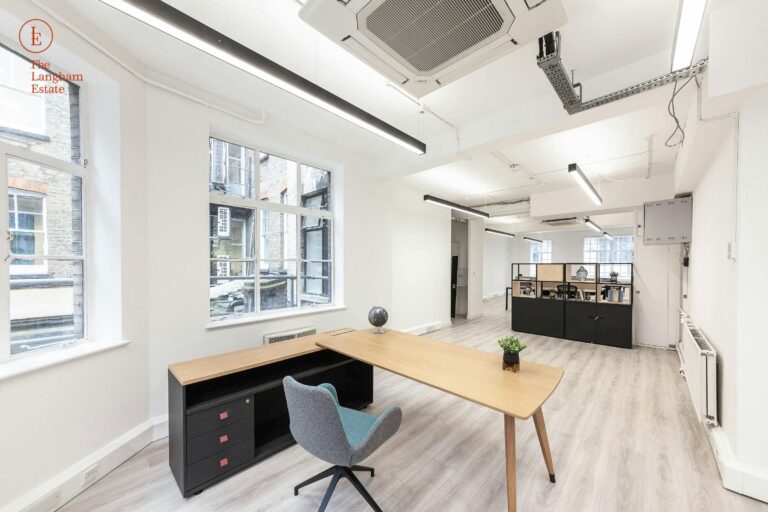 Open plan self-contained office space with A/C, kitchenette and passenger lift in a prime Fitzrovia location.