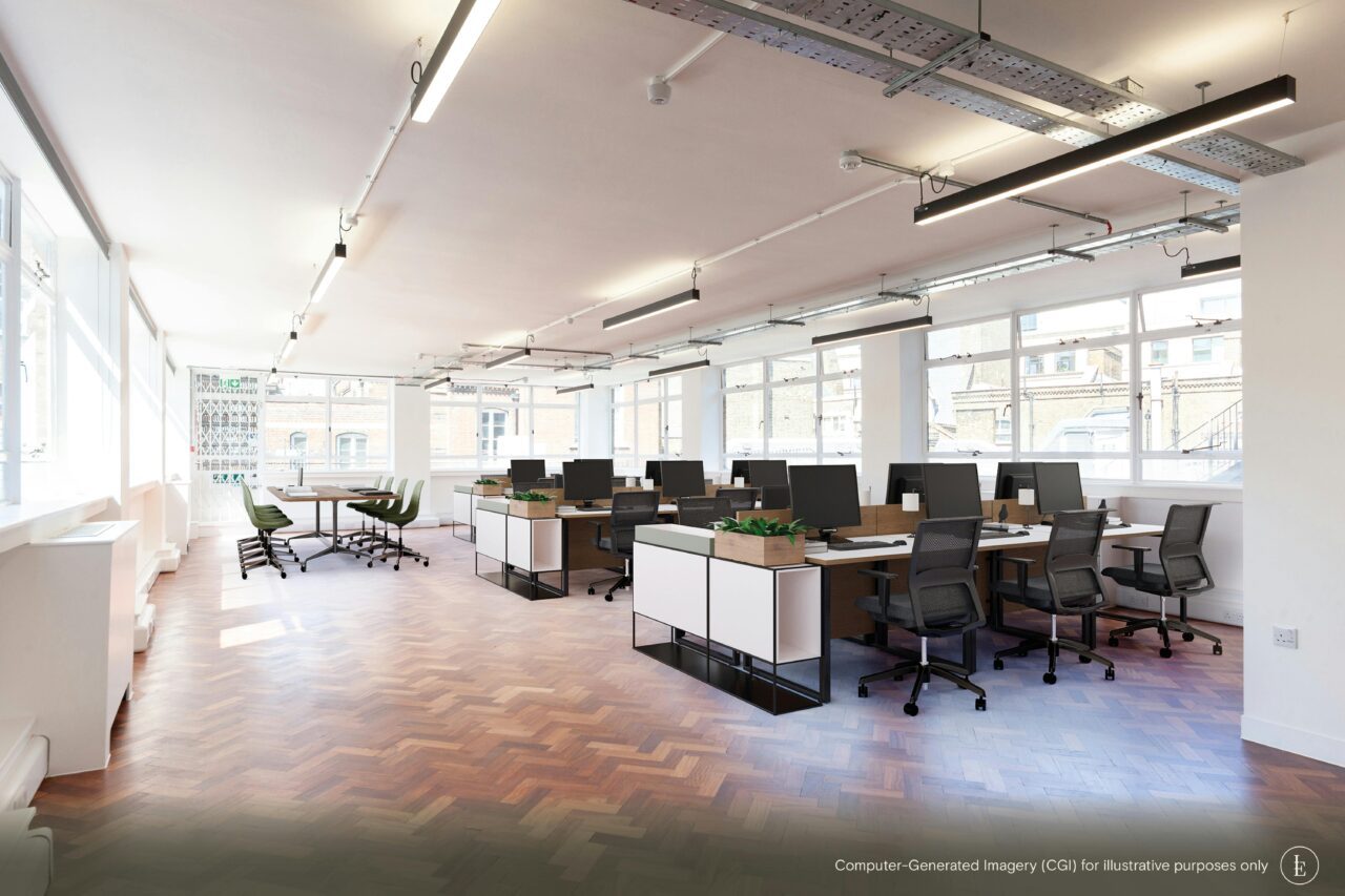 Refurbished office spaces available to let in the heart of Fitzrovia Quarter, ranging from 740 to 2,240 sq ft